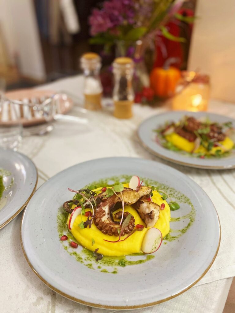 Tentacoli di polpo alla griglia su letto di friarelli ripassati in padella