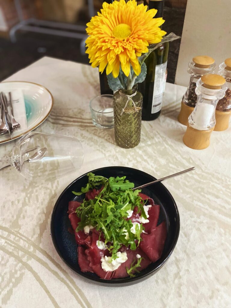 Hovädzie carpaccio s rukolym pesto & stracciatella